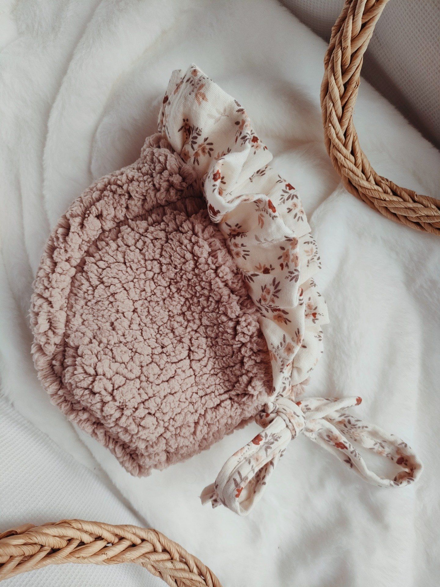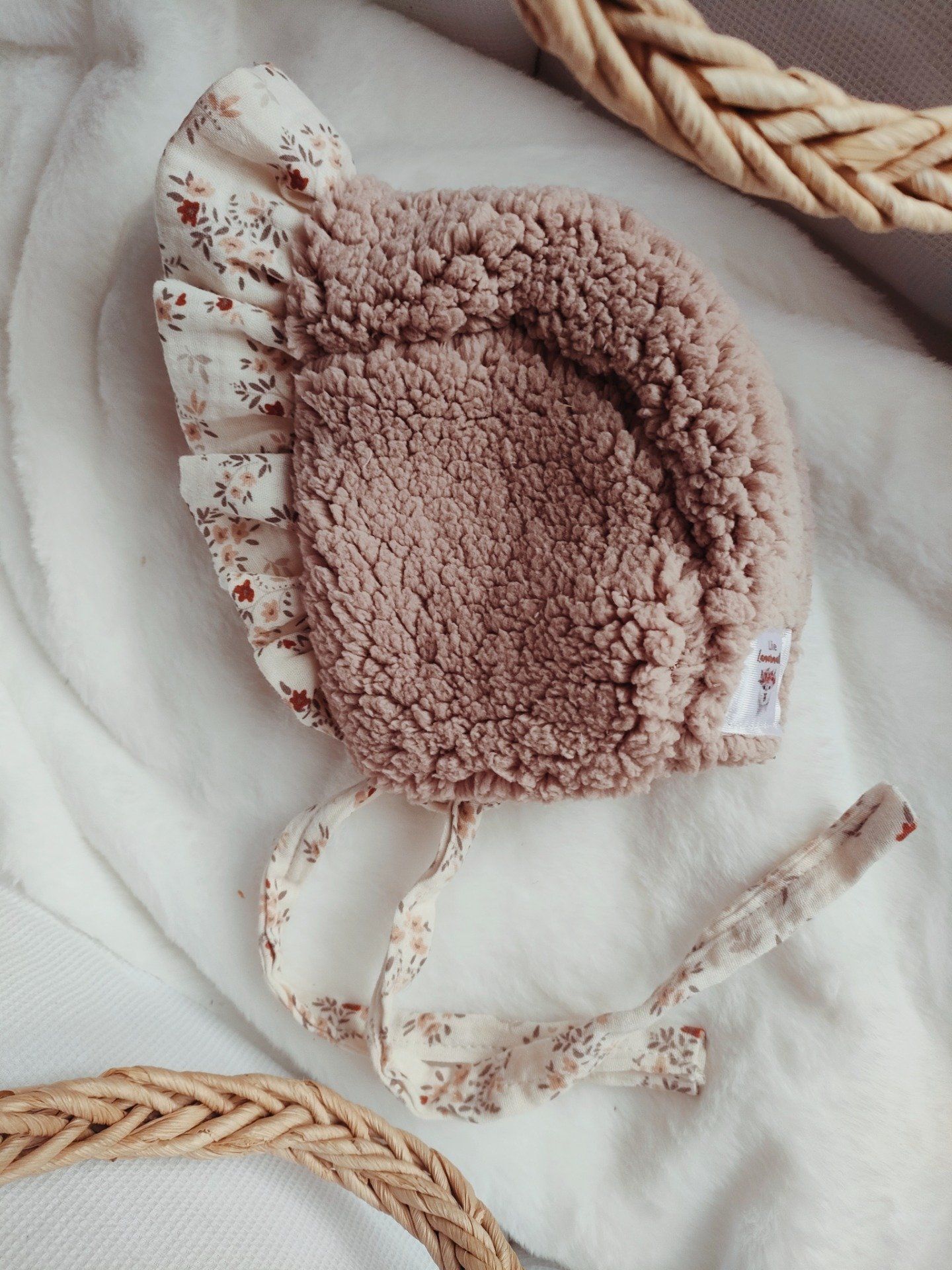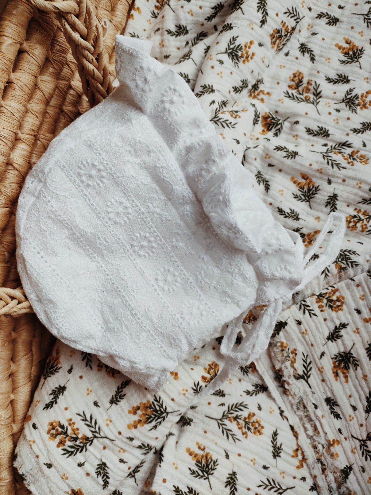 Tel un doux souvenir d’enfance, ce béguin rétro s’habille de froufrous délicats qui dansent au moindre mouvement. Coiffant la tête avec grâce, il évoque les dimanches d’autrefois, les rubans noués avec soin et le charme tendre des détails précieux. Un accessoire plein de poésie, où chaque volant raconte une histoire sucrée et intemporelle.