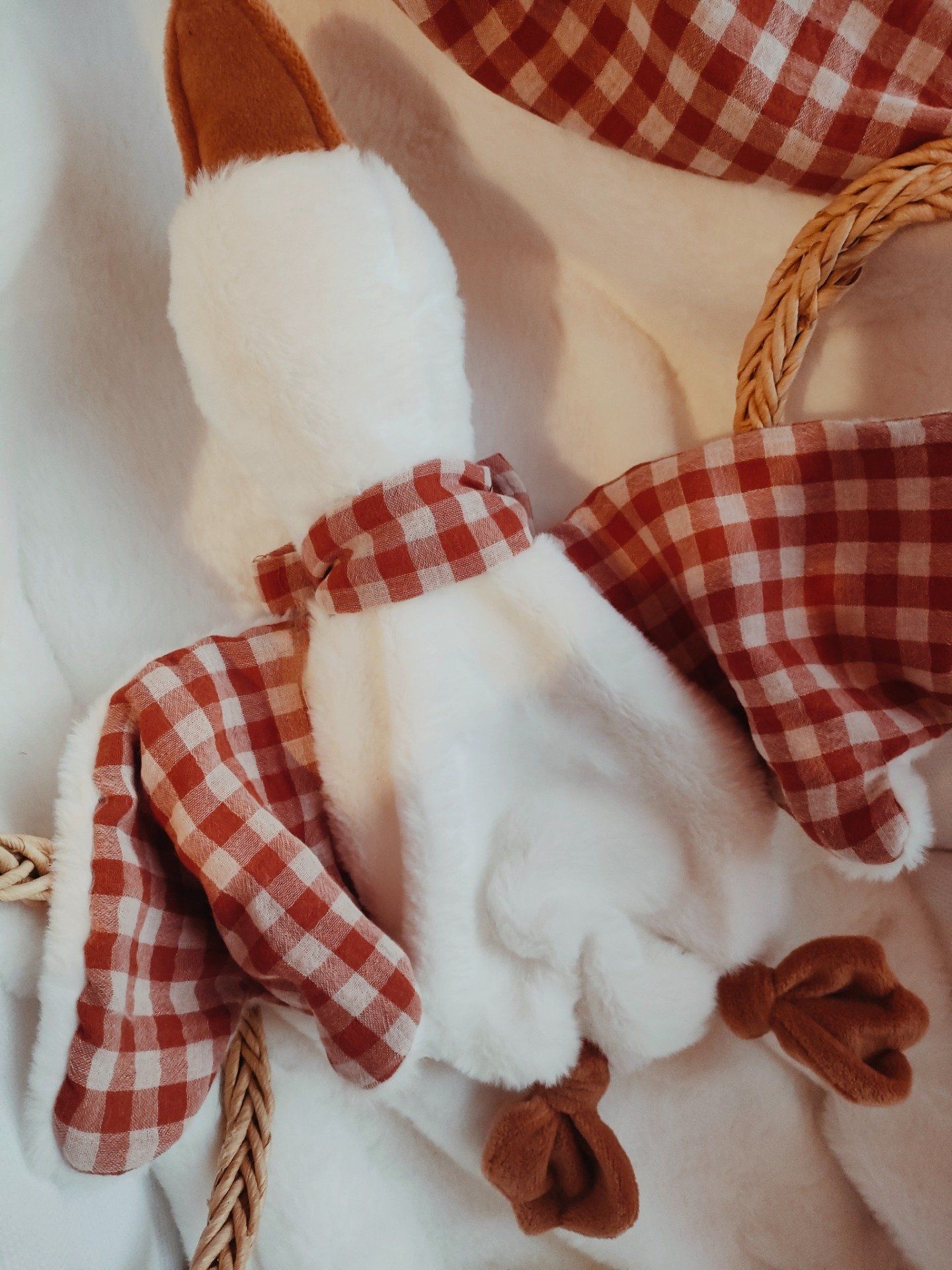 Création sur mesure , avec choix du tissu sous les ailes et du ruban autour de son cou. Parmis un large choix a l'atelier