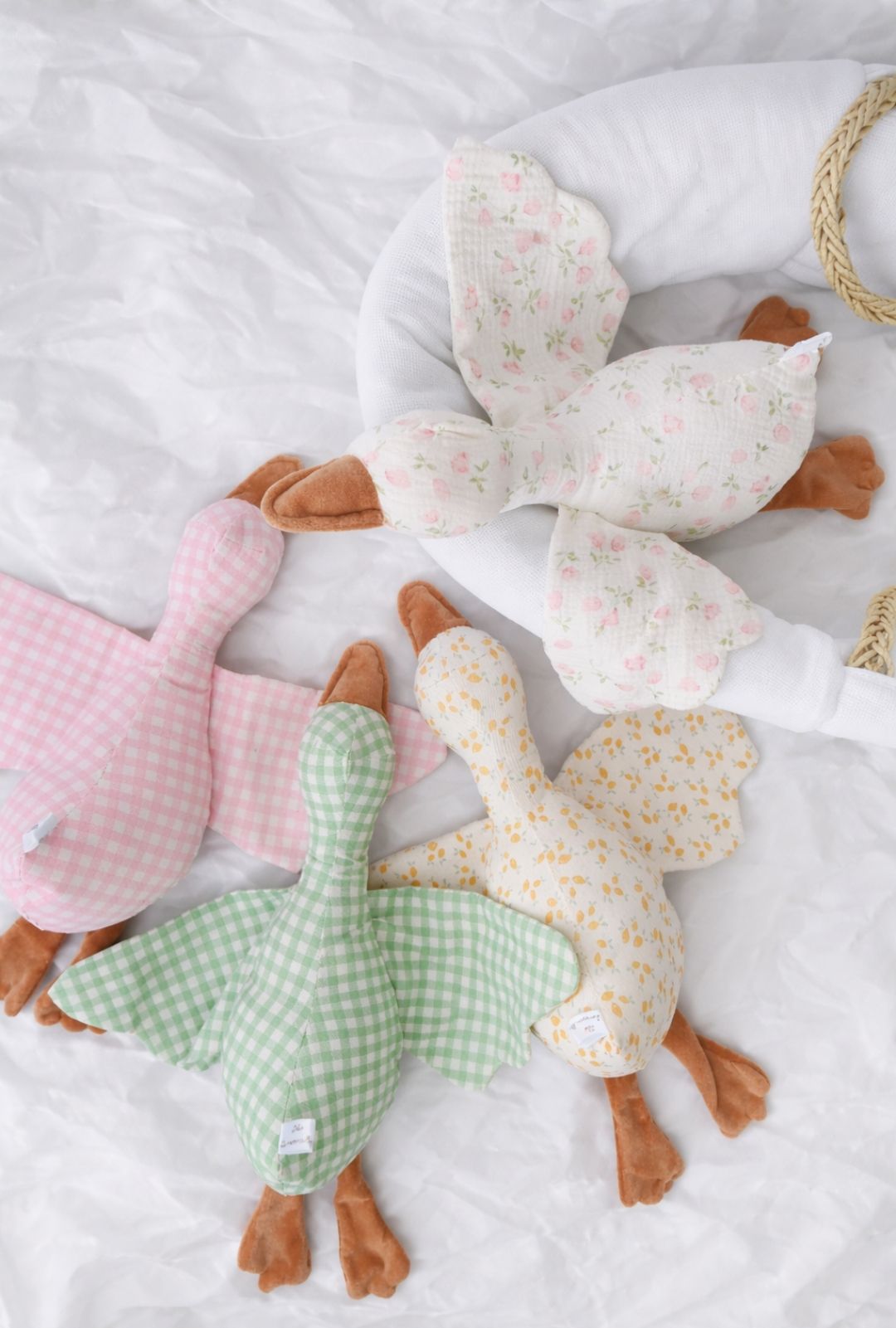 Plumette est une grande peluche oie, imaginée pour offrir des câlins sans fin